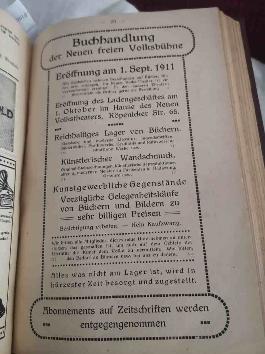 Eröffnung der Buchhandlung der "Neuen Freien Volksbühne" im September 1911