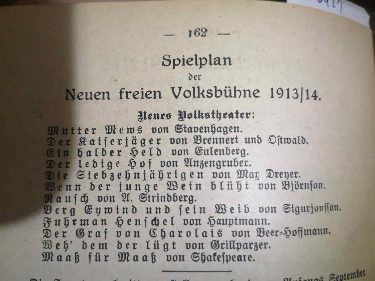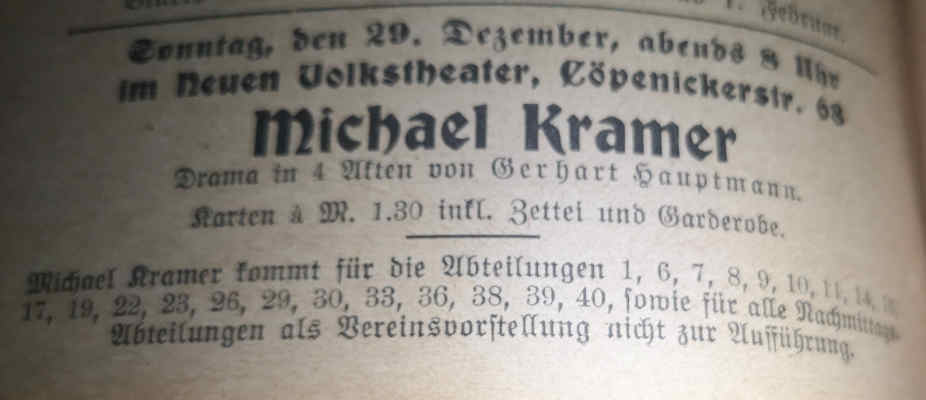Spielplan entnommen aus den Mitteilungen der "Neuen Freien Volksbühne"