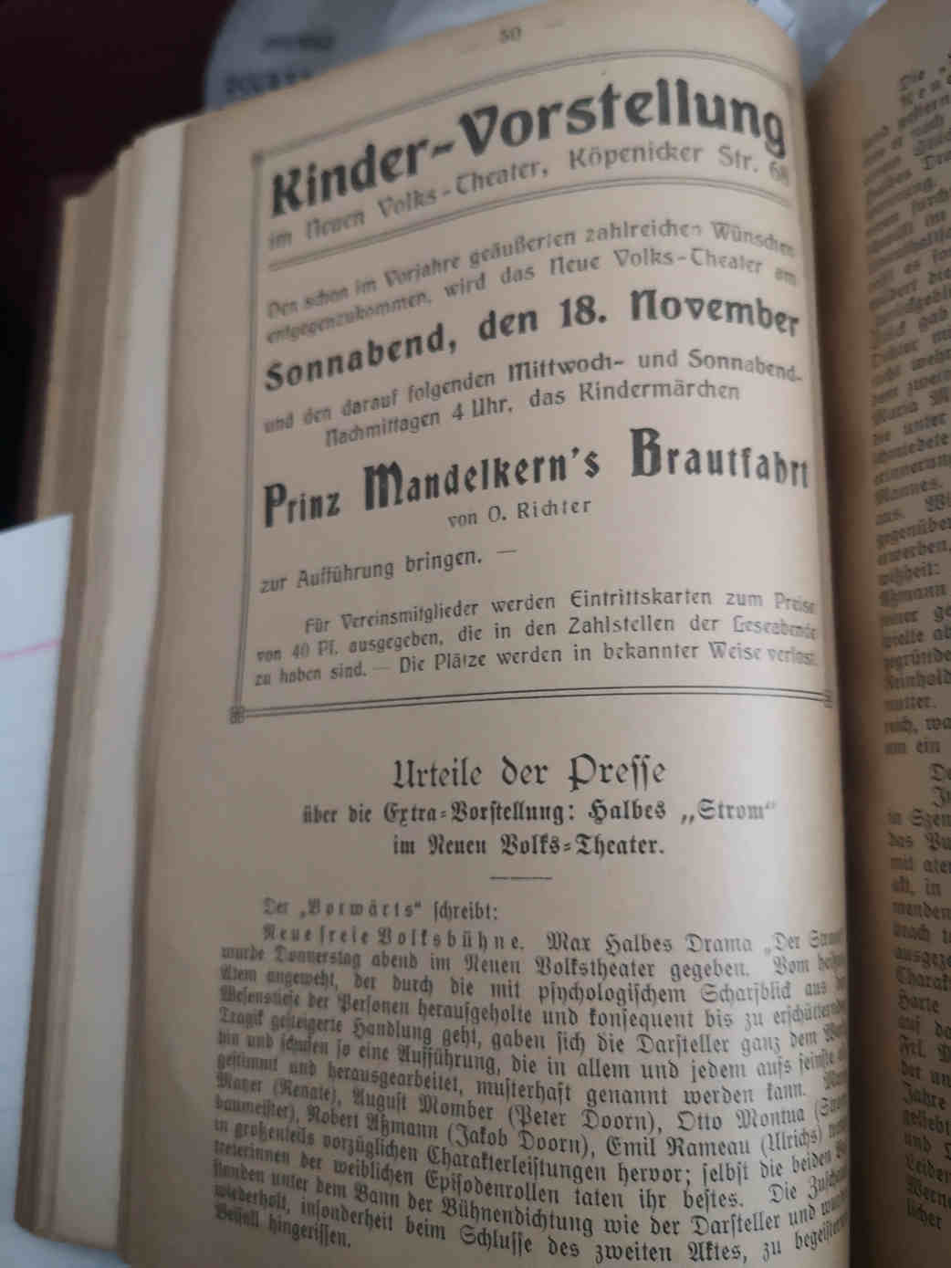 Vorstellung "Strom" 1911 von Max Halbe