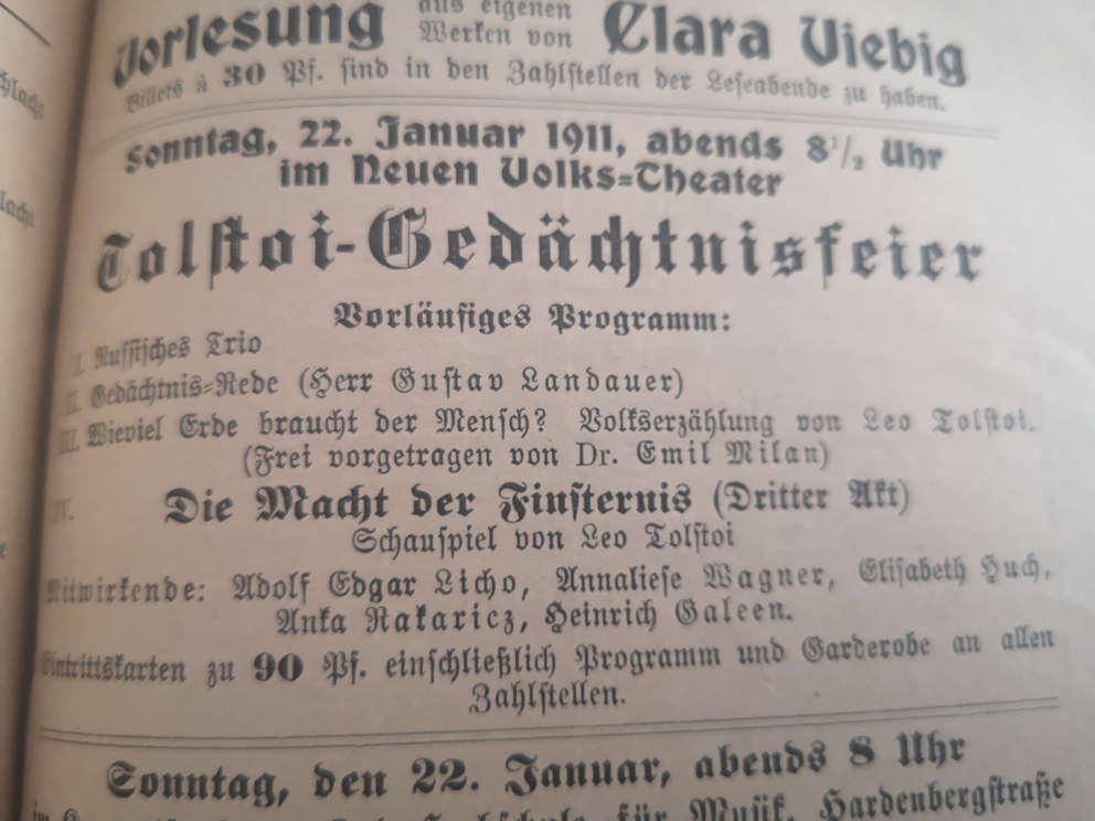 Tolstoi Gedächtnis-Feier mit Gustav Landauer |