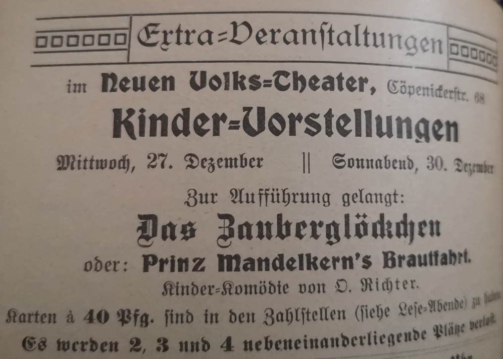 Offensichlich wurde die Spielstätte in der Köpenicker Straße aber weiter als "Kleines Neues Volkstheater" weiter betrieben.