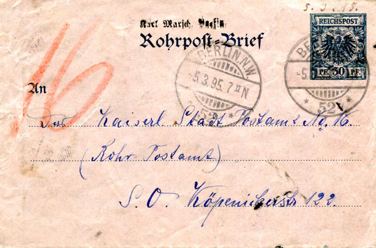 1895, Rohrpostbrief ans Postamt 122, ob es geantwortet hat?