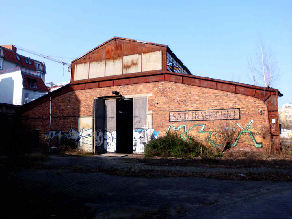 Eine große Halle entlang Grundstücke an der Adalbertstraße.(erbaut um 1926 - abgerissen 2021)