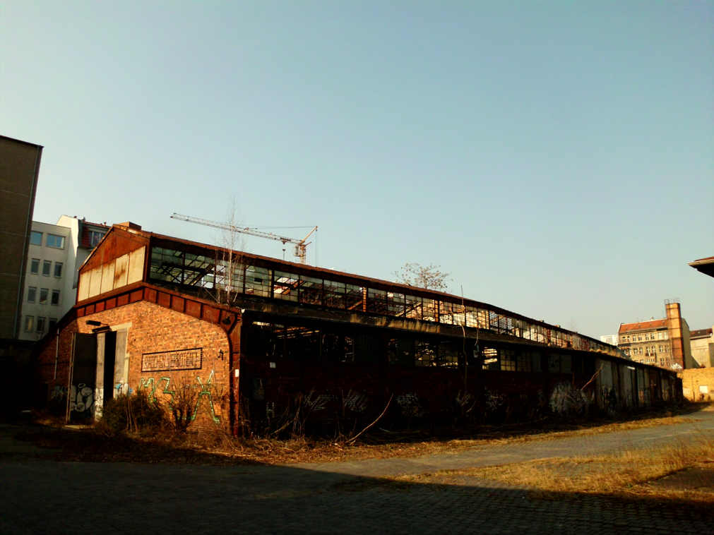 Der Blick von der Köpenicker Straße, der ehemaligen Ausfahrt des Betriebes, ließ nur wenig von der bedeutenen Nutzung des Geländes erahnen.
